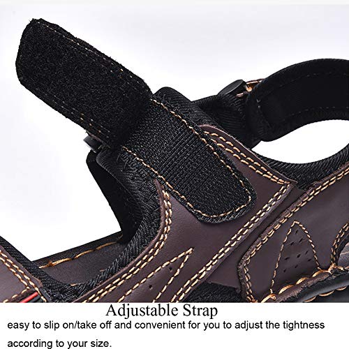 Men’s Leather Sandals Open Toe Outdoor Hiking Sandals for Men Adjustable StrapsComfort Fisherman Walking Sandles