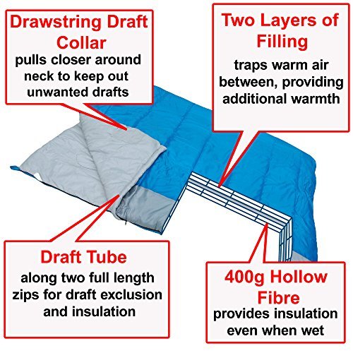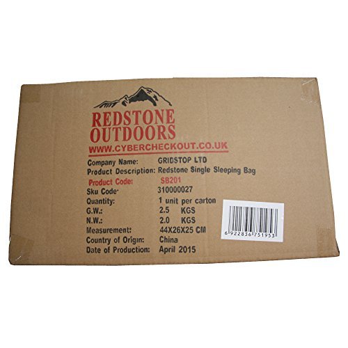 Redstone Outdoors SINGLE Sleeping Bag. Dimension: 210cm (L) x 85cm (W). Filling: 400g Hollow Fibre – 2 Layers of Filling. Season 3. Matter subject material: Polyester. Inside of Lining: Polyester. Gadget wash at 30 ranges. Drawstring Draft Collar Draft Tube. Chest Pocket. Raise Bag. Weight: 2kg
