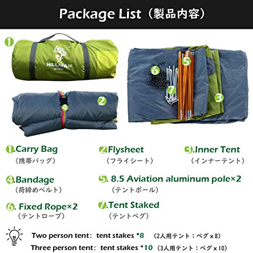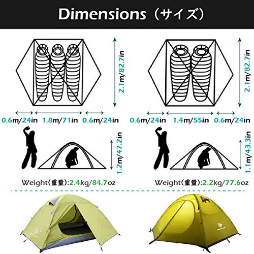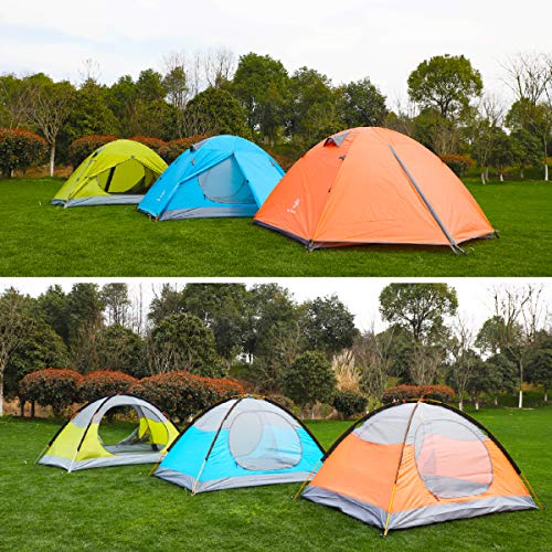 🌱 HIGH QUALITY MATERIAL – With 210T ripstop polyester plaid fabric, the 2 3 person tent provides the maximum durability and uv protection. 2 large doors offer easy access, 2 vents provide airflow to prevent condensation buildup