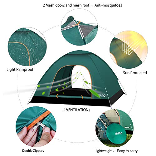 URPRO Instant Automatic pop up Camping Tent, 2-3 Persons Lightweight Tent, Waterproof Windproof, UV Protection, Perfect for Beach, Outdoor, Traveling,Hiking,Camping, Hunting, Fishing